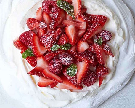 Mix these with 1/2 cup of the raspberry sauce. Your Pavlova Assembly: