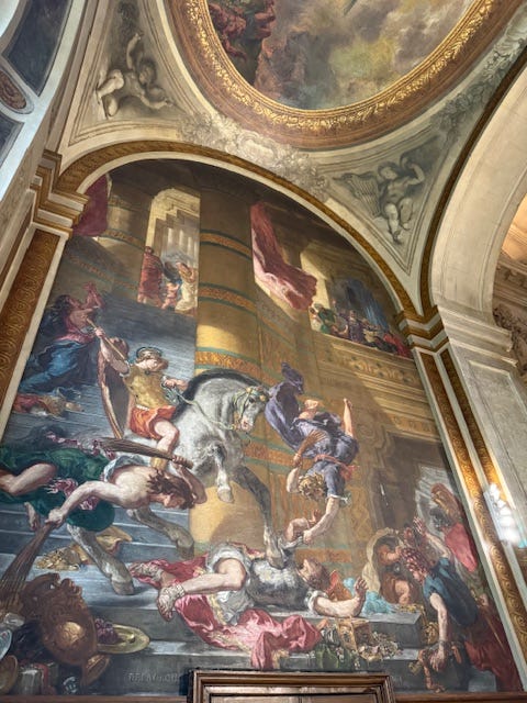 No longer can I, bathed in your languor, O waves, Follow in the wake of the cotton boats, Nor cross through the pride of flags and flames, Nor swim under the terrible eyes of prison ships.Translation by Wallace FowlieBelow is the book that includes a translation I like as well. The first translation I ever read, Louise Varese, but I can’t find it online. The book is worth having. And here is a glimpse of the Delacroix: I am quite tired so I will report again tomorrow. Have a good night. I have a few more photos and another translation for tomorrow….. | |