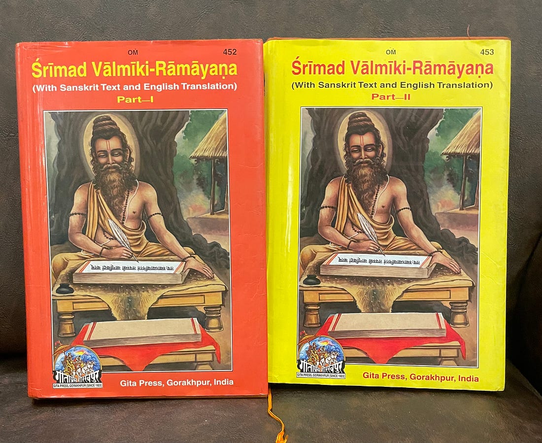 I’m happy to share 19,937 verses - 534 Sargas over 6 Kandas - from my four-year journey reading The Gita Press English translation of the Valmiki Ramayana and pairing it with original Sanskrit ghanapaati recitations on Spotify.